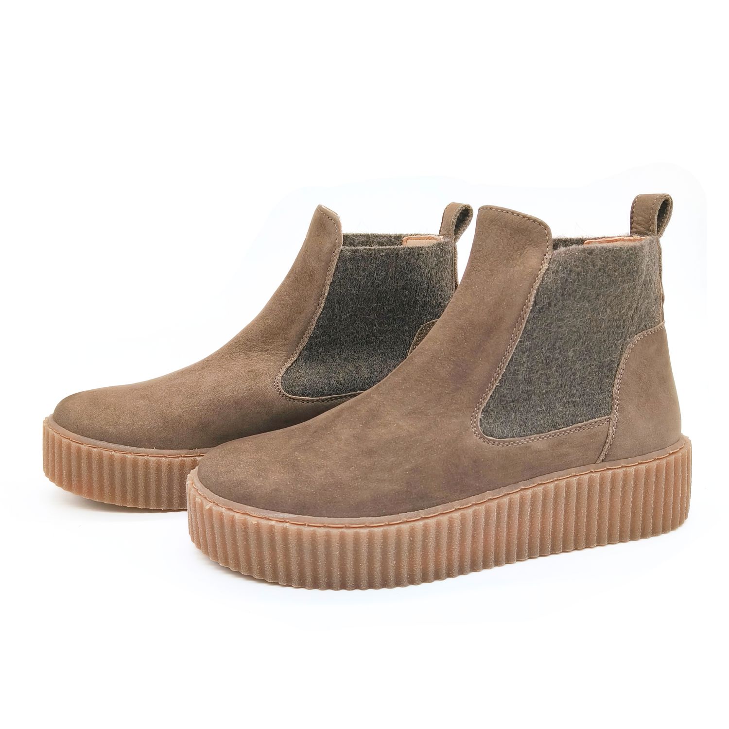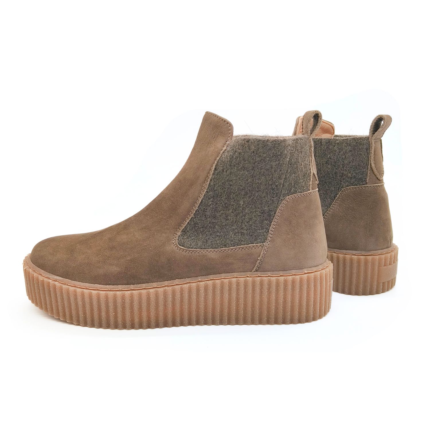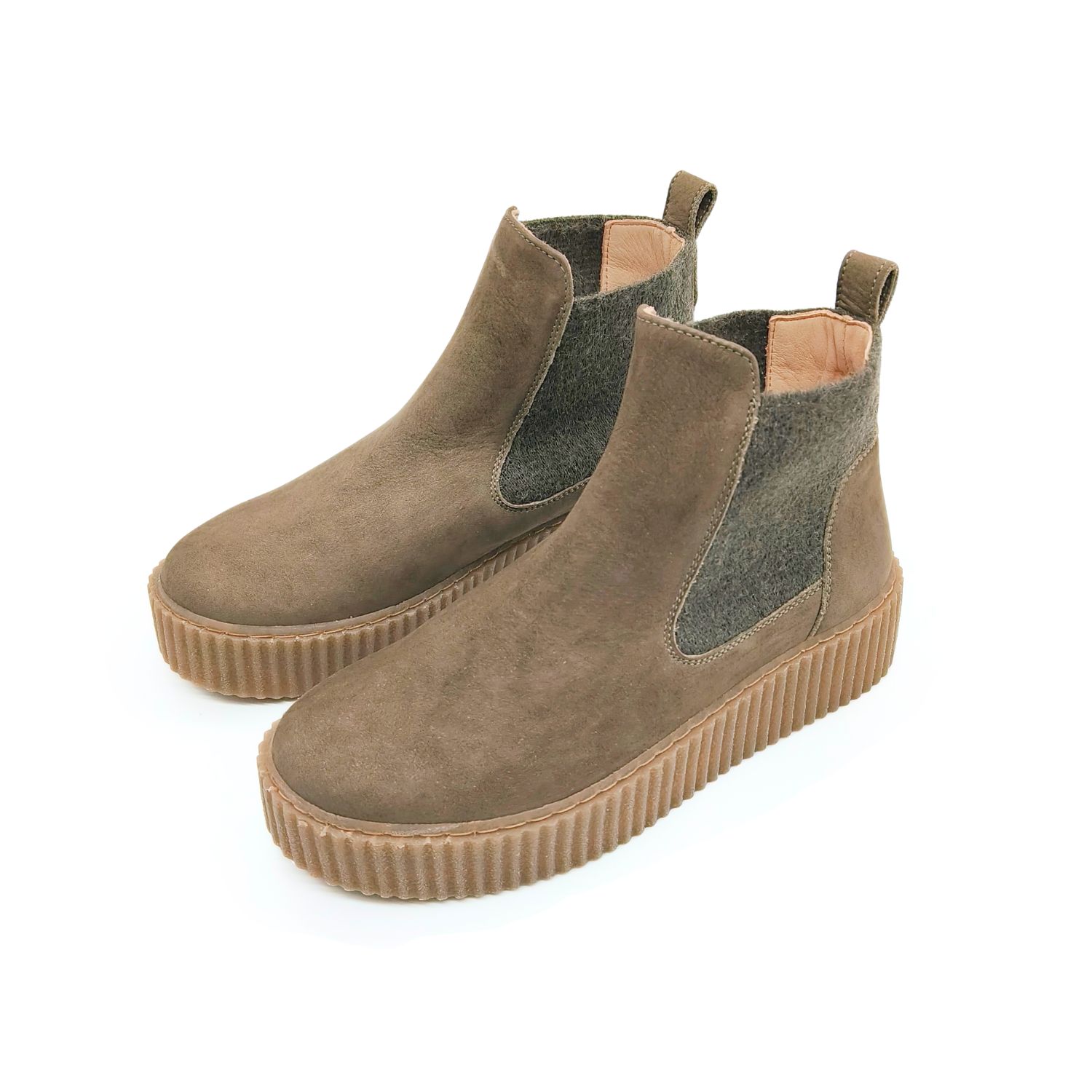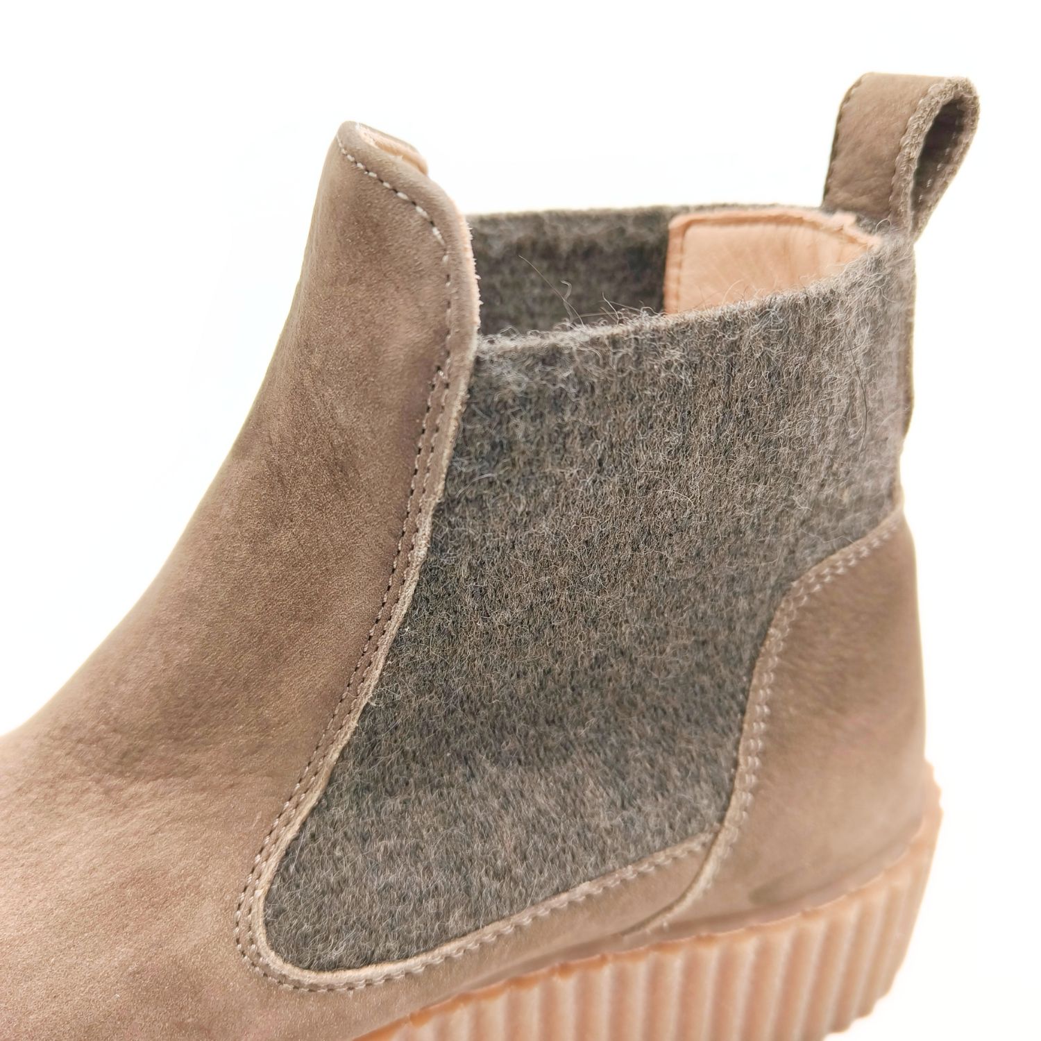 Der Fennek ist ein zeitloser Chelsea Boot aus edlem Bio-Nubukleder im warmen Farbton taupe. Pflanzlich gegerbt und weich im Griff, überzeugt er durch natürliche Qualität und nachhaltige Fertigung. Dank des seitlichen Gummizugs in grau schlüpfen Sie ganz einfach hinein und wieder heraus – ein praktischer Alltagsbegleiter mit klassischem Charakter. Eine dezente Lasche erleichtert zusätzlich das Anziehen.