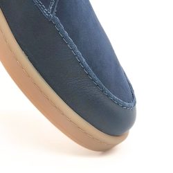 Im edlen Dunkelblauton überzeugt der Eringer durch seine charakteristische 2-Loch-Schnürung und seiner flachen, flexiblen Sohle, die ihm eine sportlich-elegante Note geben. Die praktische Fersenlasche sorgt dafür, dass Sie bequem hinein- und herausschlüpfen können – perfekt für Ihren Alltag.