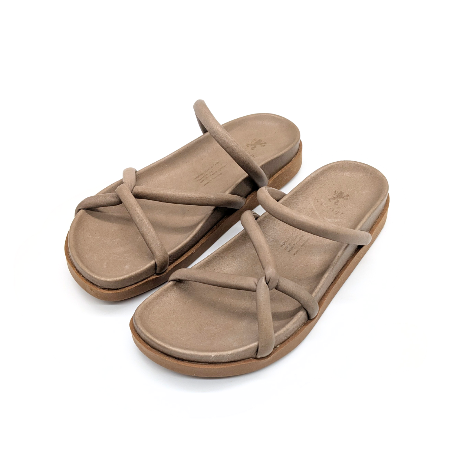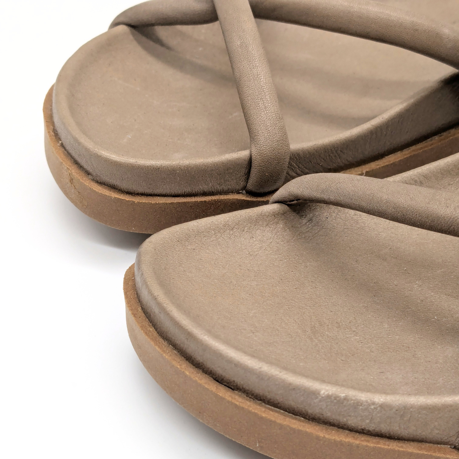 Die schmalen, weich gepolsterten Riemen passen sich dem Fuß an und sorgen für sicheren Halt ohne Druckstellen. Das ergonomisch geformte Fußbett unterstützt die natürliche Abrollbewegung und ermöglicht ein entspanntes Tragegefühl – auch bei längerem Tragen.