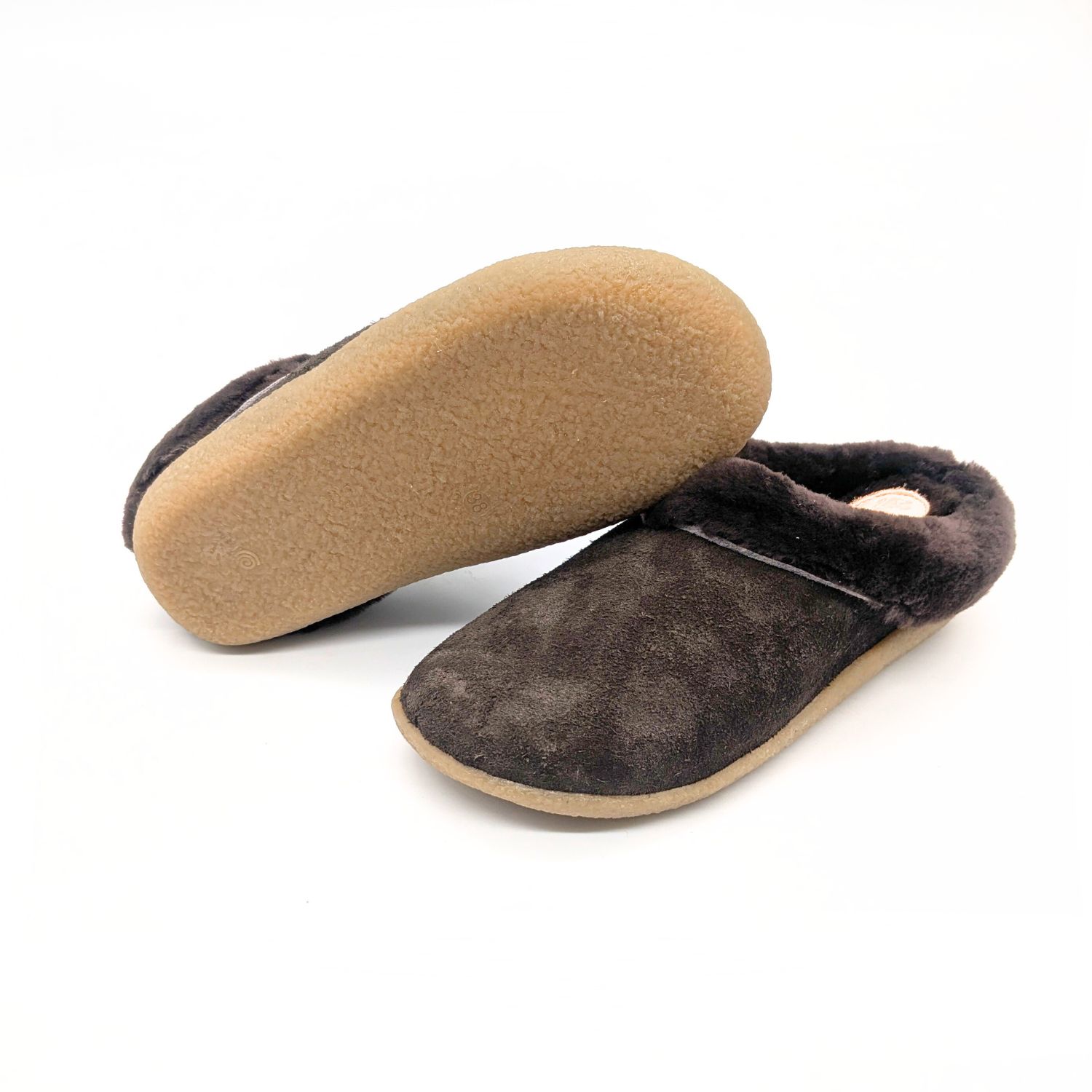 Hausschuh mit Lammfellfutter – Faultier – mokka