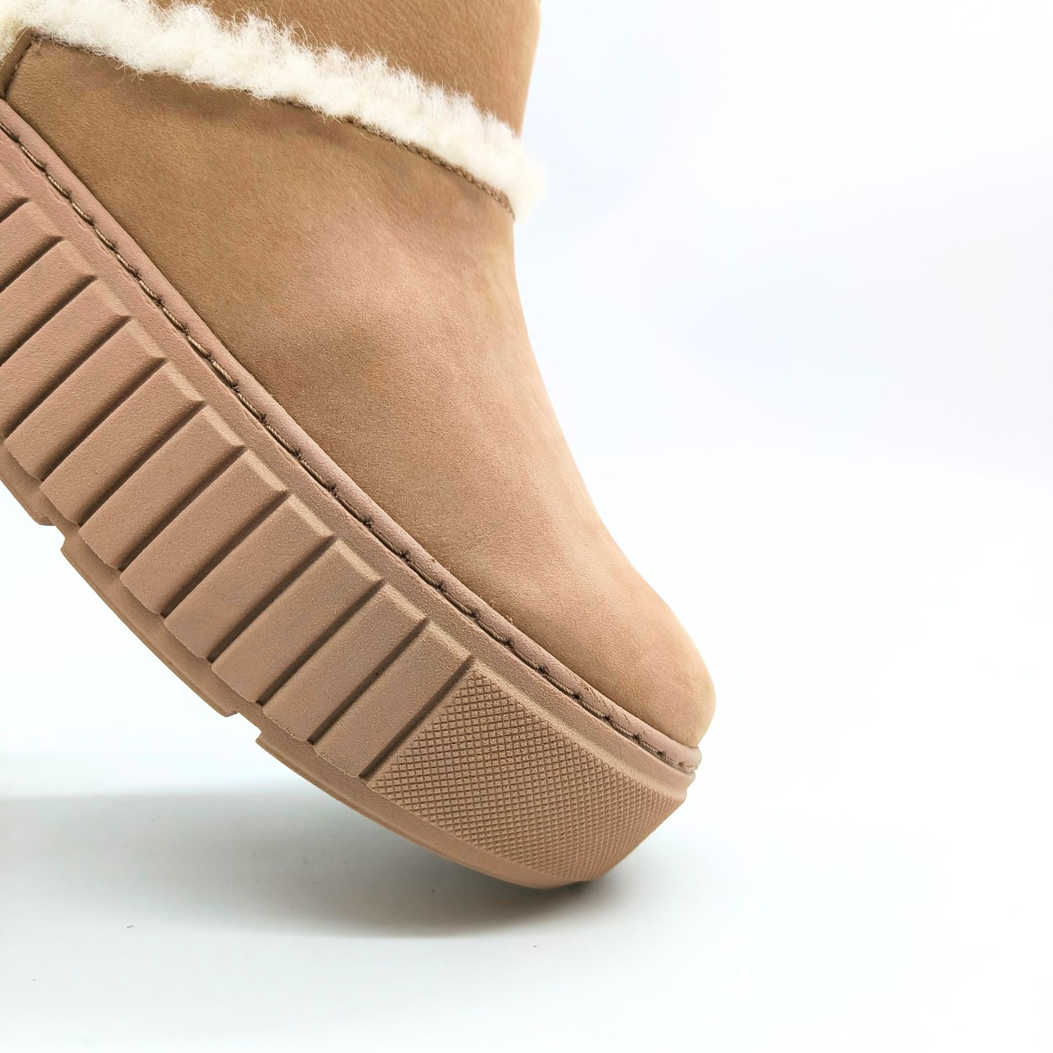 Das weiche Wollfutter sorgt für außergewöhnliche Wärme und Komfort, während die robuste, isolierende Plateausohle sicheren Halt bietet und zuverlässig vor Kälte und Nässe schützt. Durch den praktischen Reißverschluss an der Innenseite gelingt das An- und Ausziehen einfach und bequem.