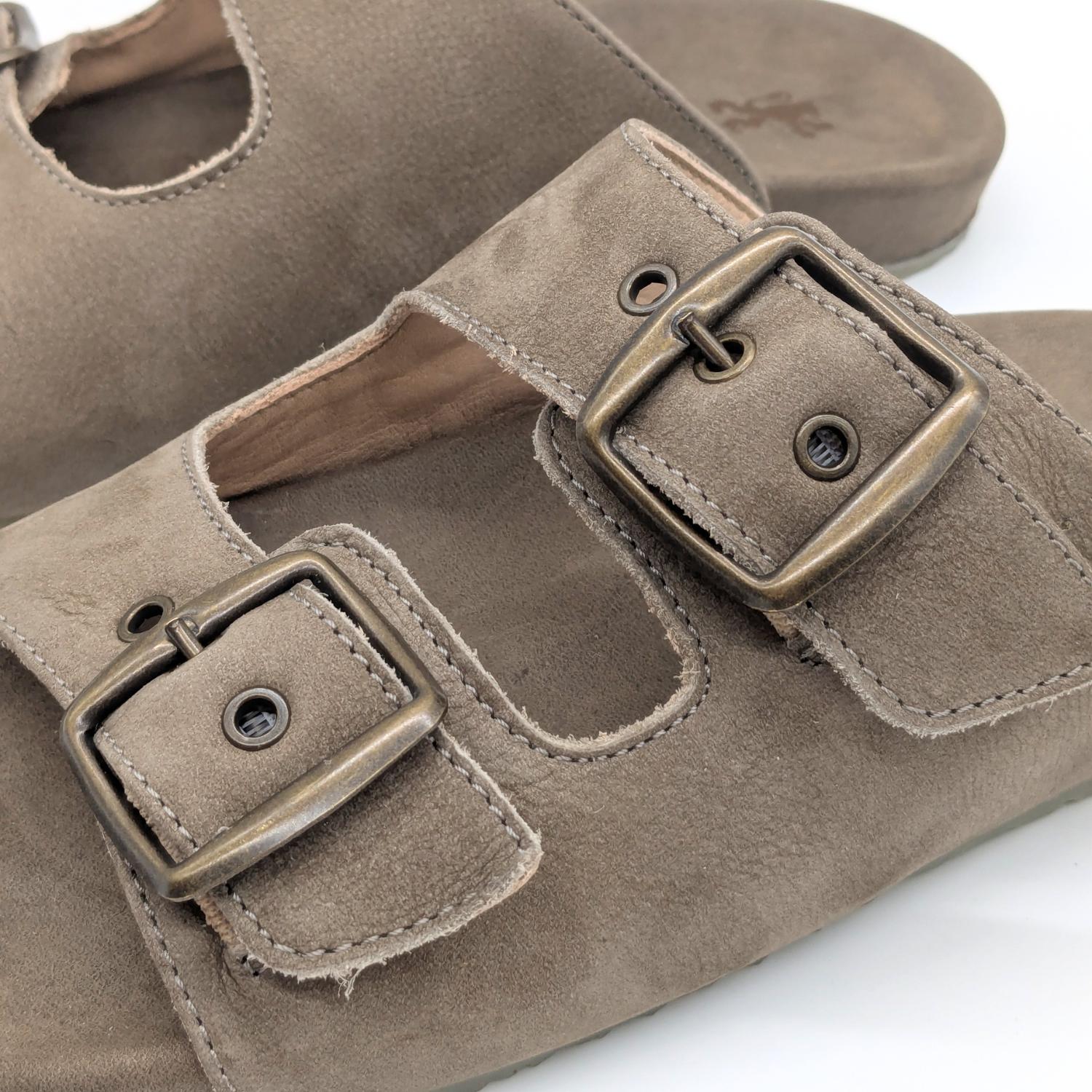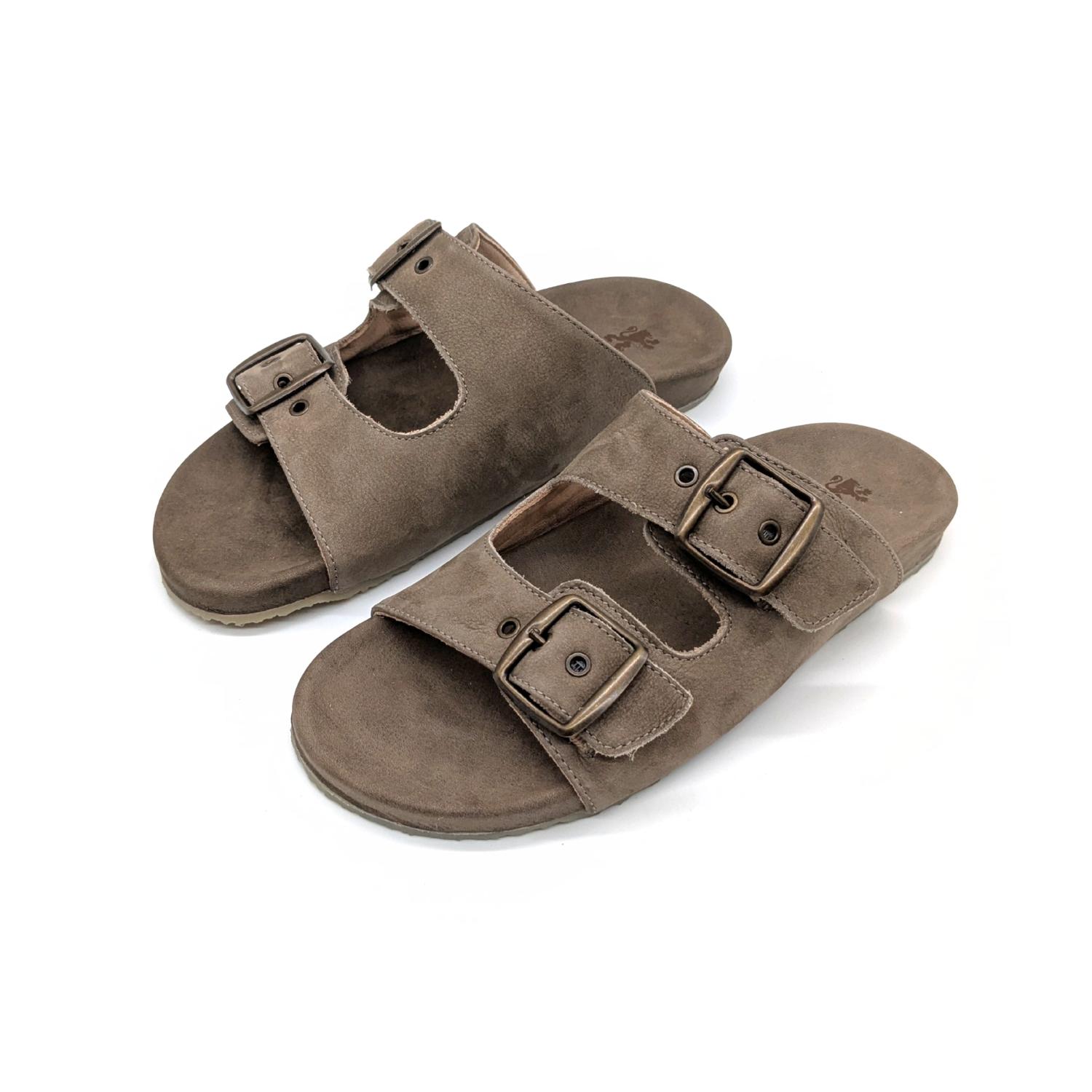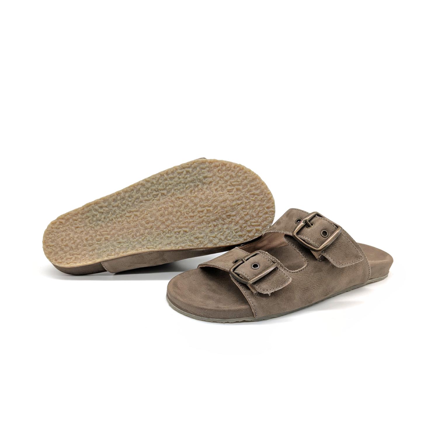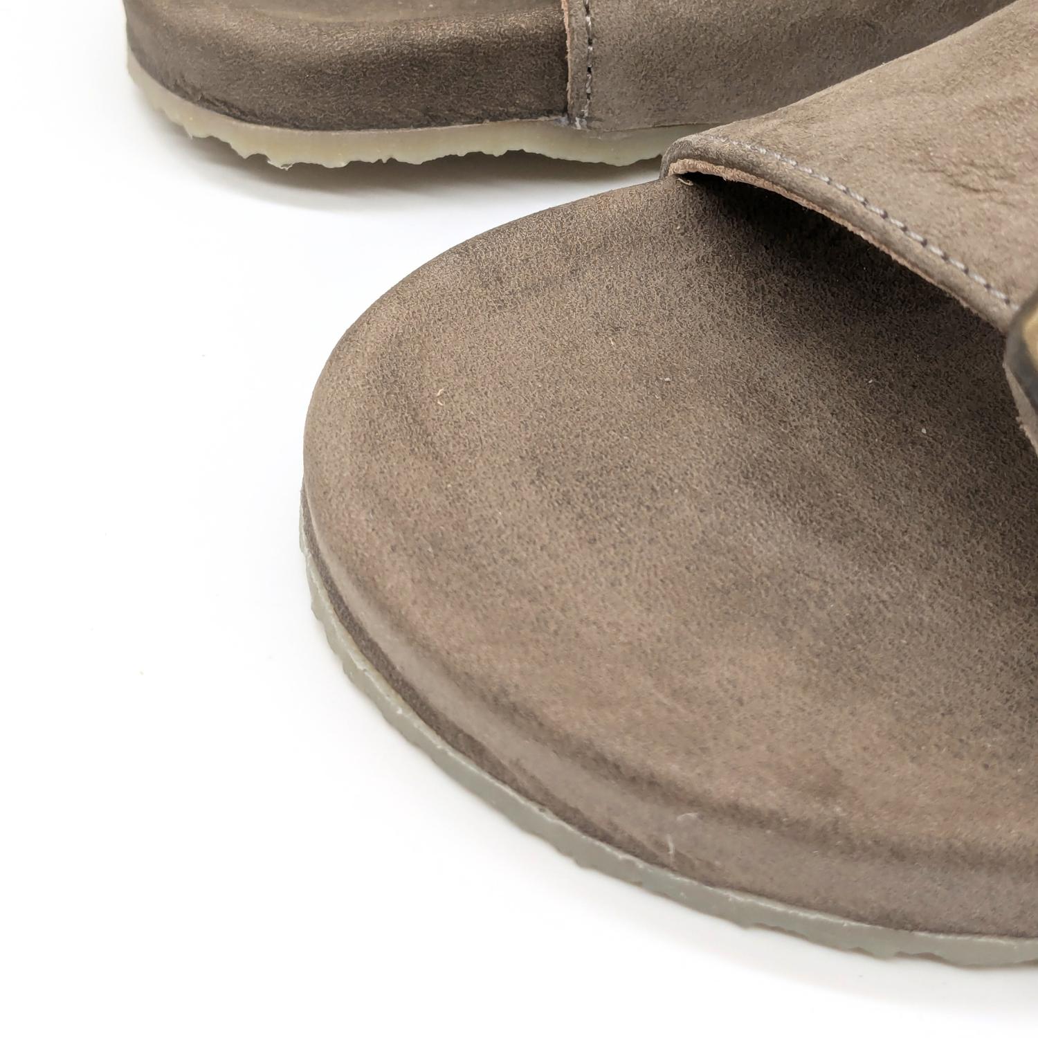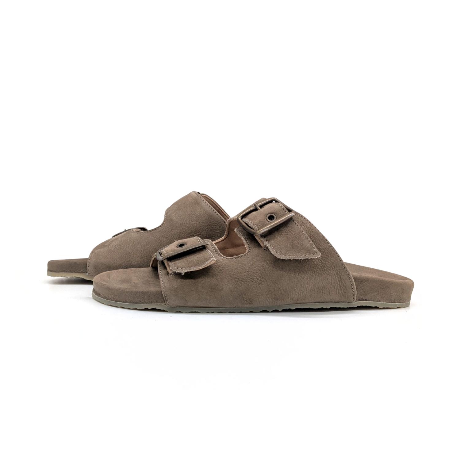 Pantolette mit Riemen – Iris – taupe Nubuk