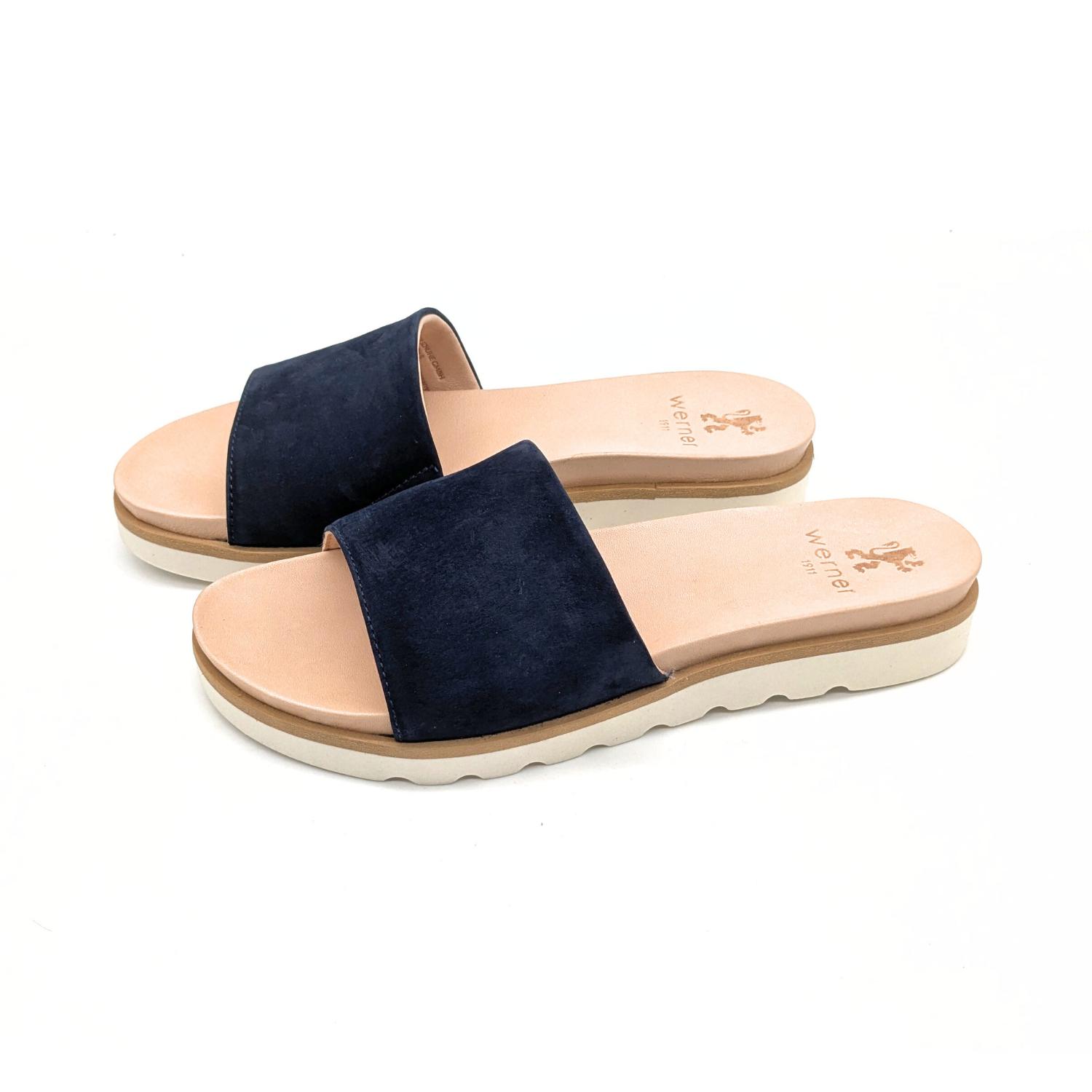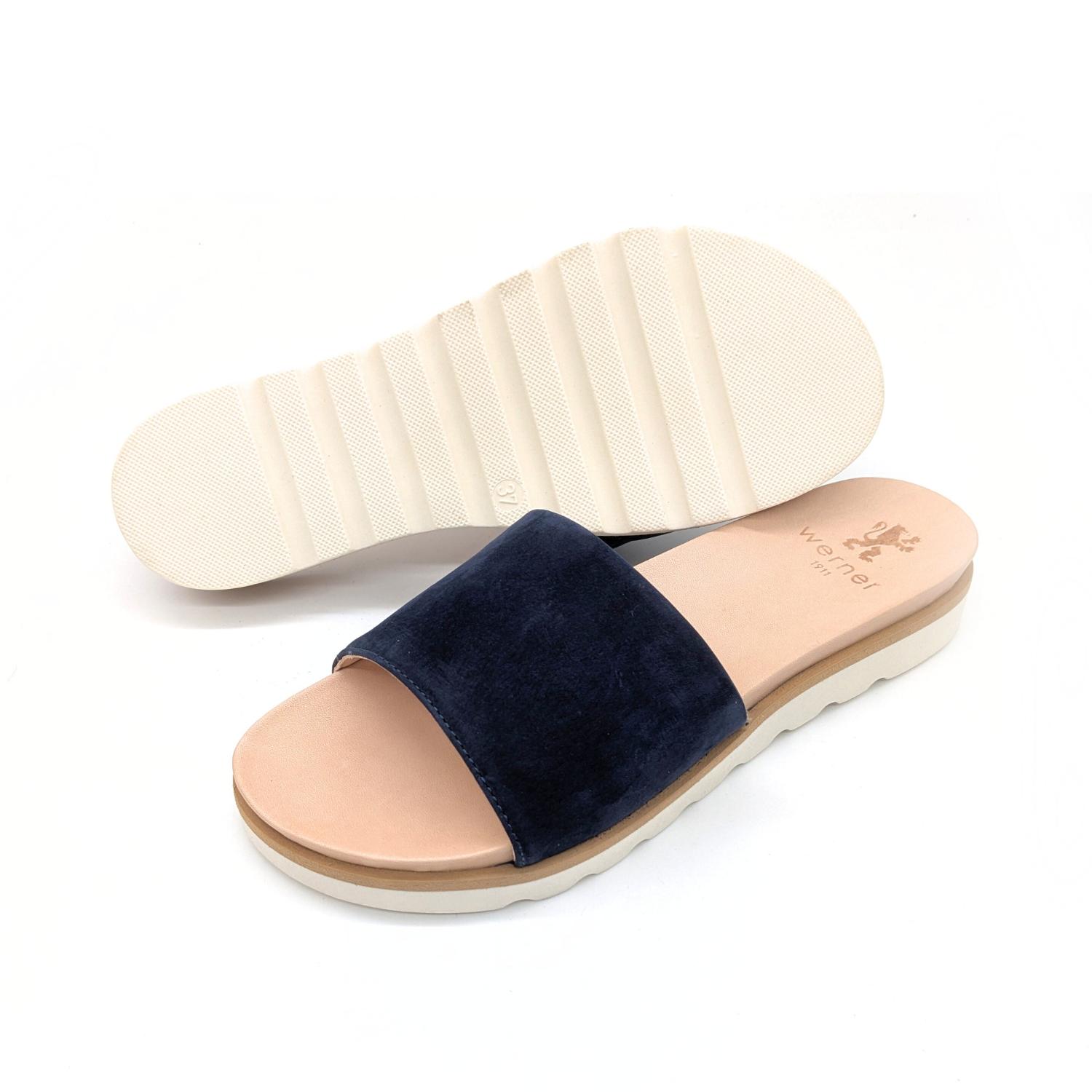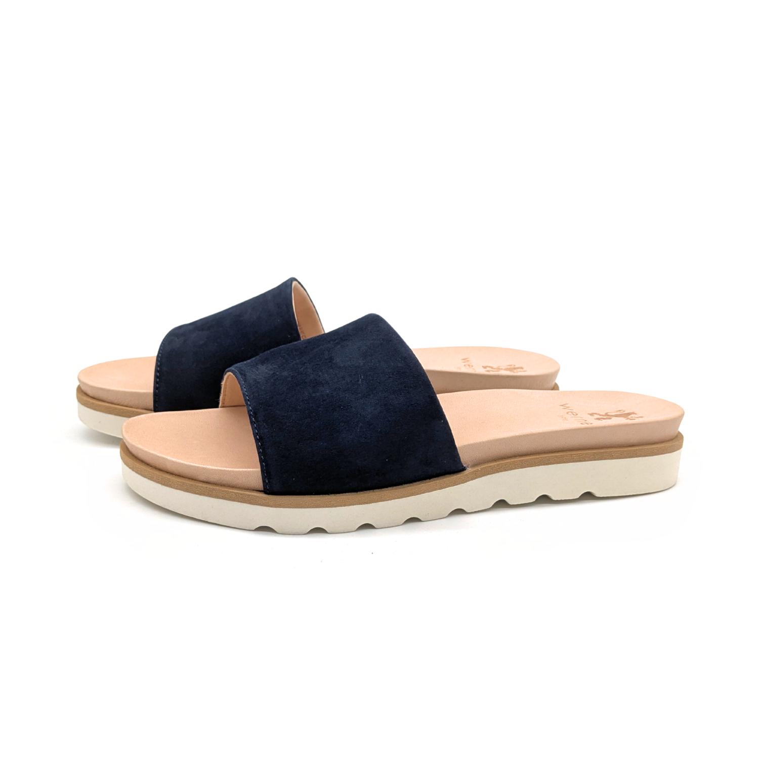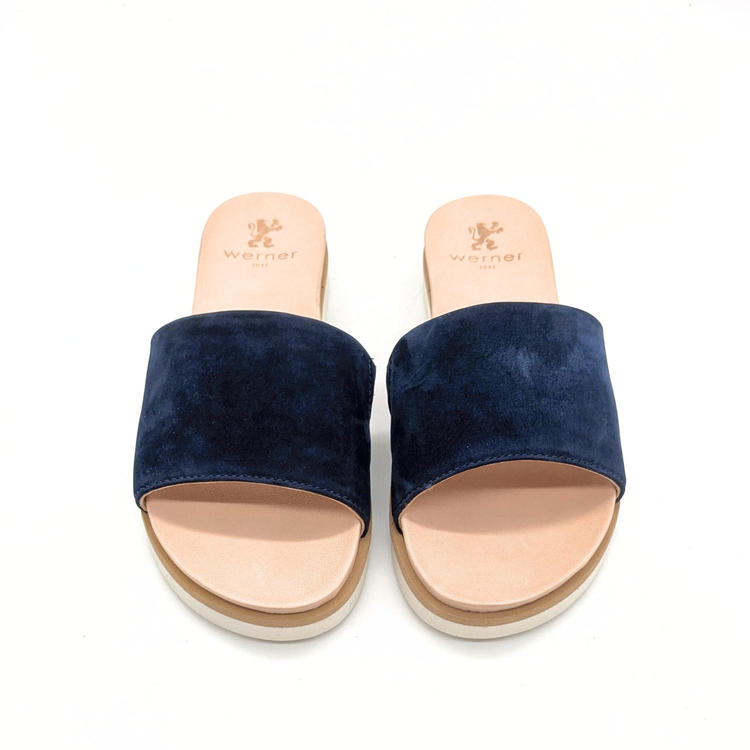 Zart, luftig und dennoch ausdrucksstark – die Pantolette Windröschen in Dunkelblau verbindet feminine Leichtigkeit mit natürlicher Eleganz. Der schmale Riemen aus geschmeidigem, pflanzlich gegerbtem Bioleder mit IVN-Zertifikat legt sich sanft über den Fuß und sorgt für einen feinen, grazilen Look. Das samtige Dunkelblau unterstreicht das zeitlos schöne Design und macht die Pantolette zu einem vielseitigen Sommerbegleiter – ideal zu fließenden Kleidern, leichten Röcken oder weich fallenden Stoffhosen.